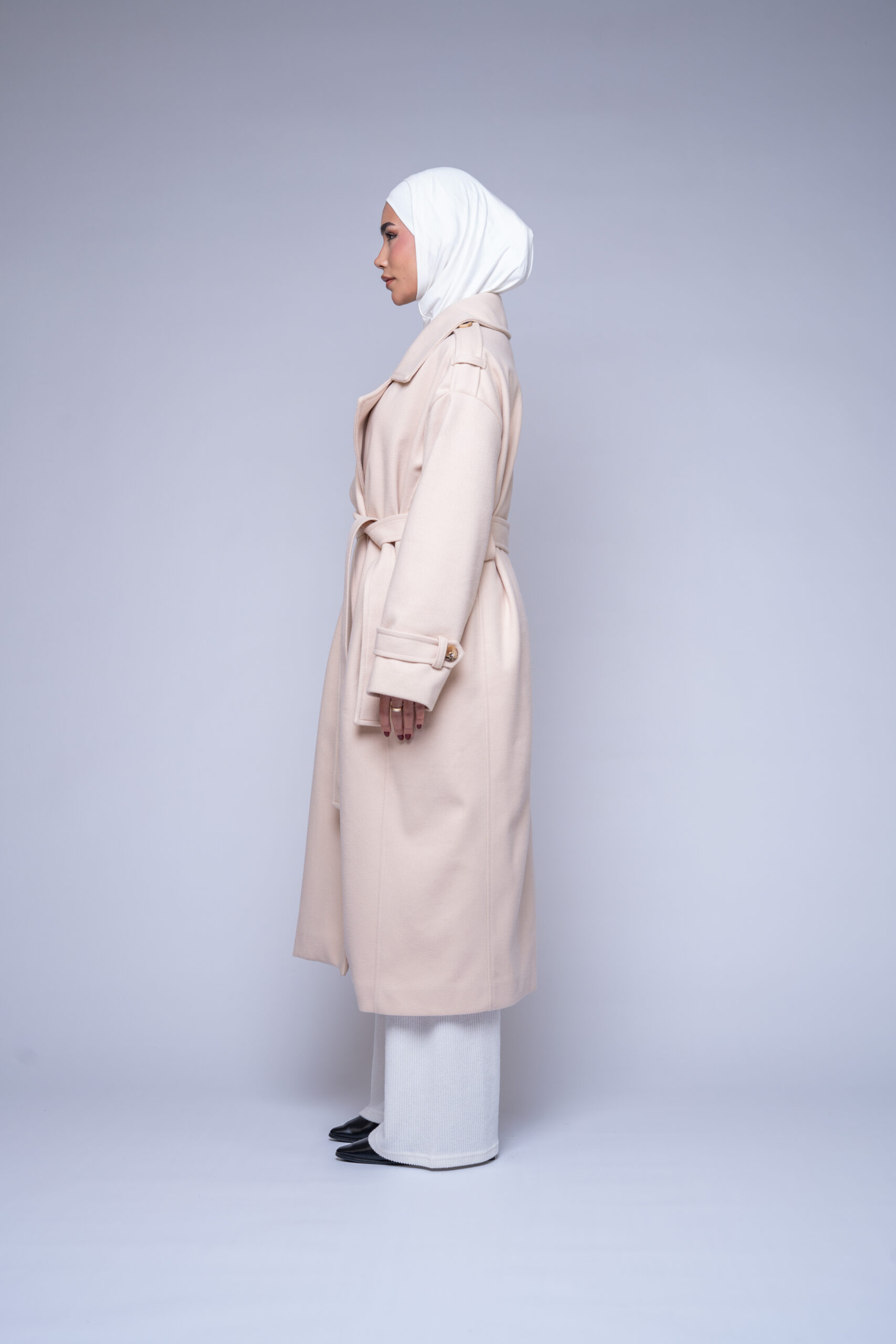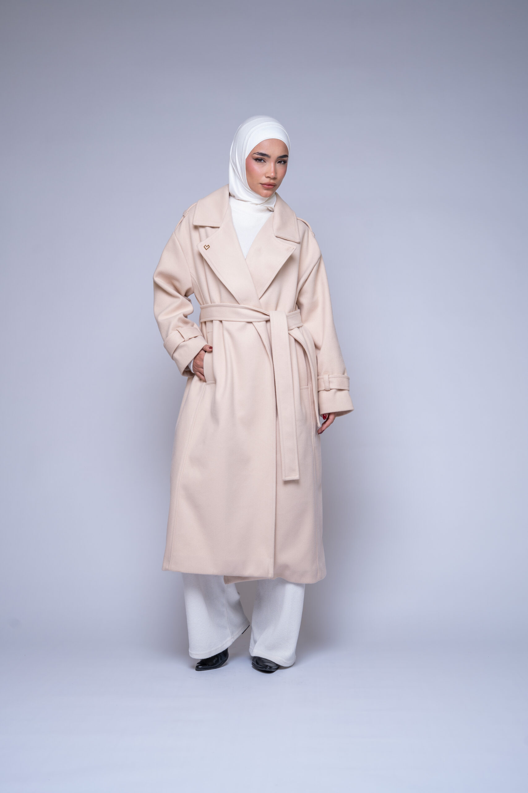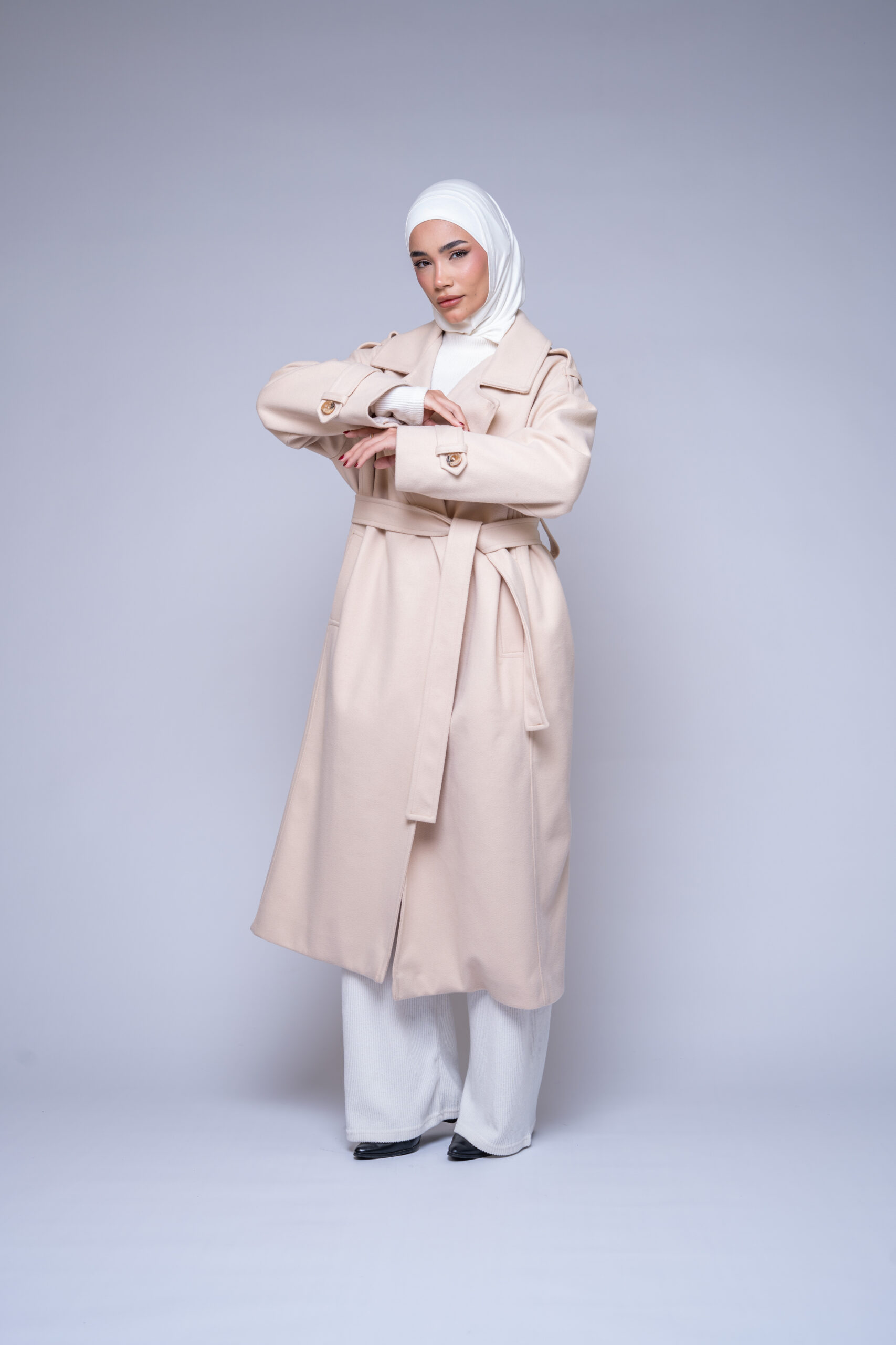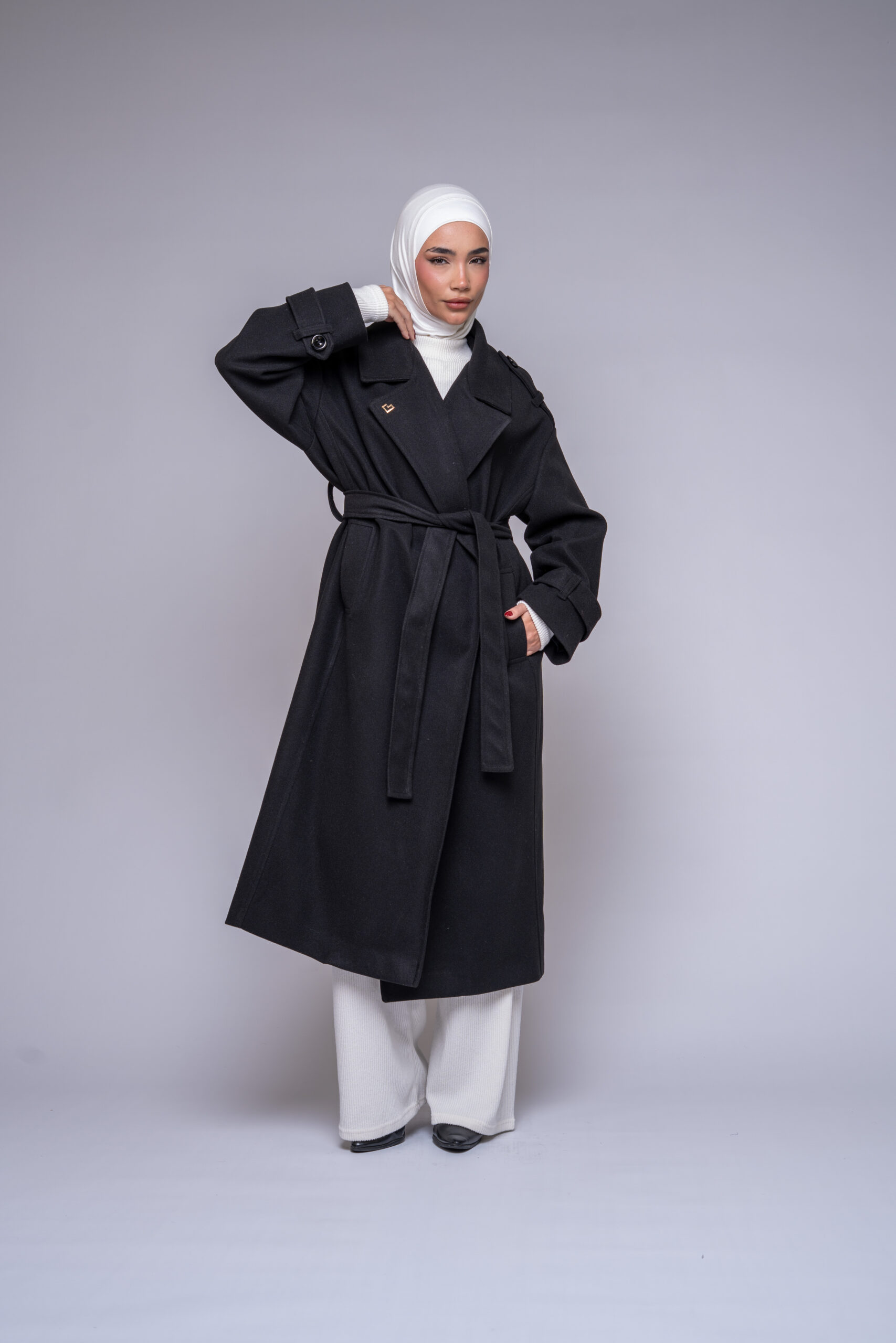 This belted long coat is designed to balance functionality with refined aesthetics. Its length provides warmth and coverage, while the structured cut ensures it remains flattering and stylish throughout the day.