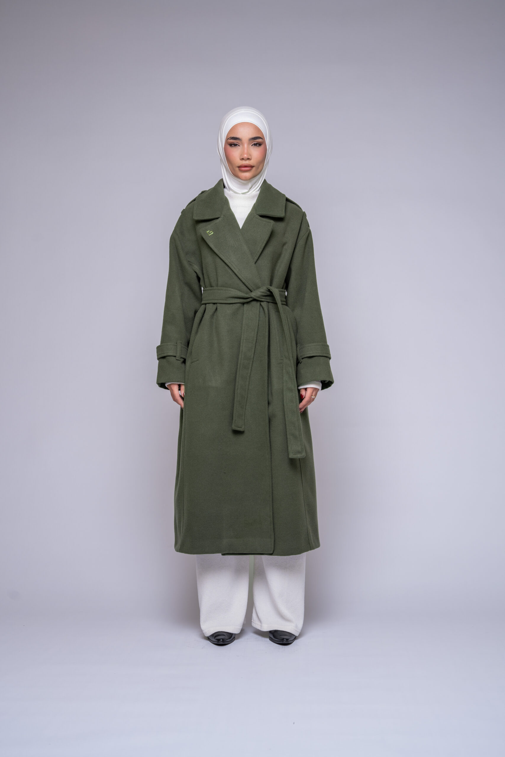 Whether worn open or belted, the coat maintains a sophisticated presence suitable for various settings.