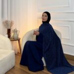 Navy Glow Scarf Ramadan Abaya by Kharzaat is designed for women who appreciate refined modest fashion and understated luxury during Ramadan. Featuring a textured scarf-style overlay, this design drapes gracefully across the shoulders, creating depth and elegance without heavy embellishment.
