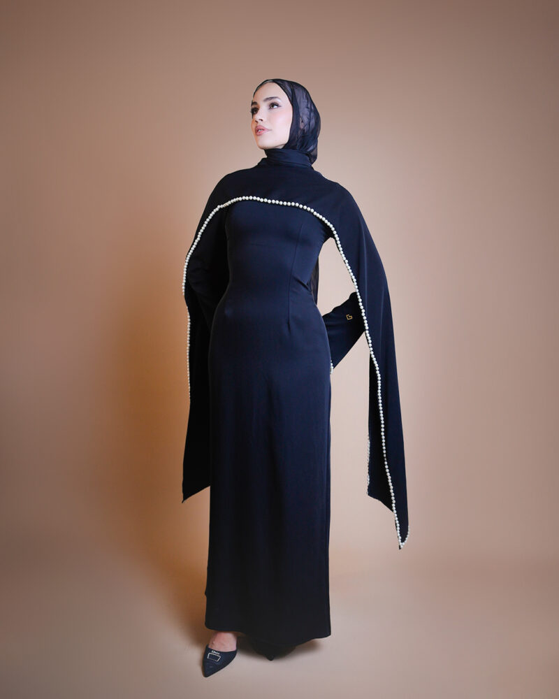 The Pearl Dress by Kharzaat is a statement of refined elegance, designed for the woman who values timeless luxury. Crafted from high-end crepe fabric, it offers a smooth, premium finish that combines structure with graceful movement.