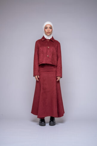 Suede Jacket & Skirt Set by Kharzaat – Gold Button DesignSuede jacket skirt set by Kharzaat is an elegant winter ensemble designed to combine structure, comfort, and refined style.